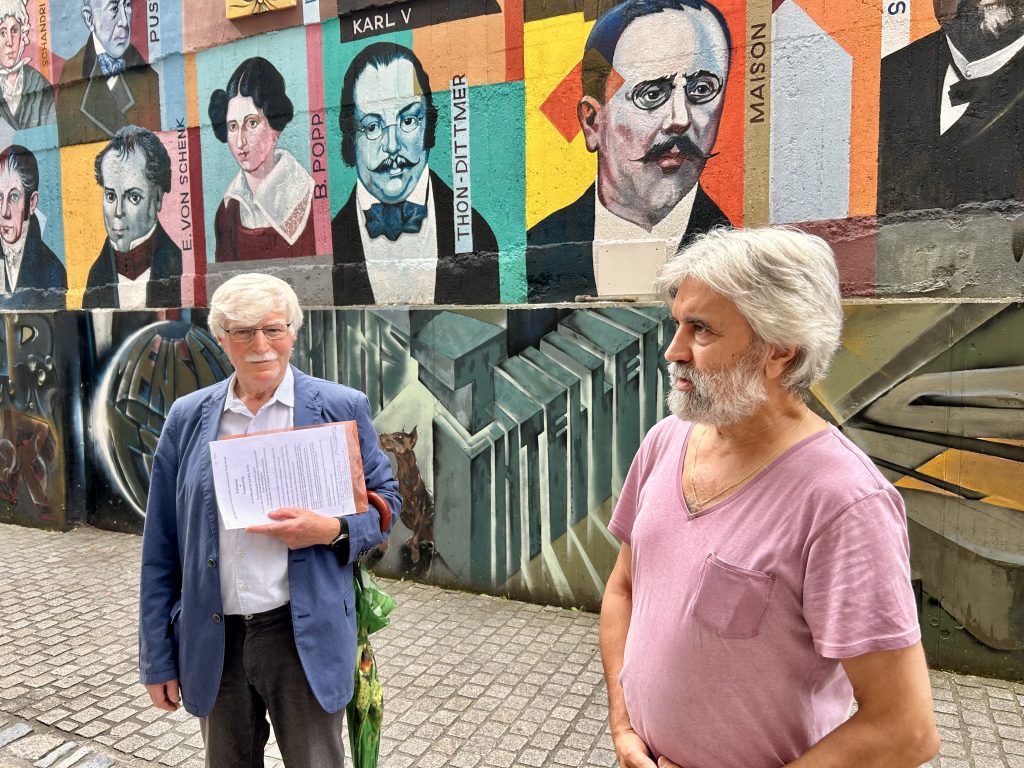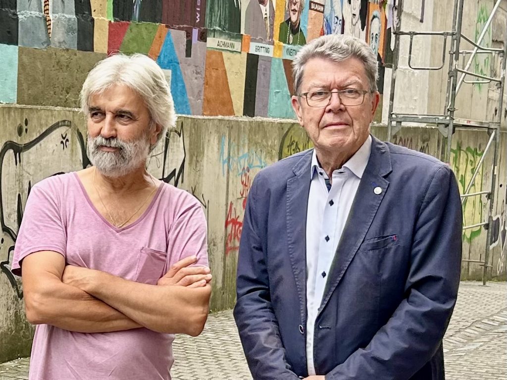 Vor wenigen Tagen wurde die Fertigstellung dieses gewaltigen Kunstwerks gefeiert. Die Ahnengalerie reicht zurück bis in die Anfänge Regensburgs. Die Freilichtgalerie mit den berühmten Köpfen schmückt eine Betonmauer von 70 Metern Länge. Auf einer Fläche von 350 Quadratmetern sind dort 129 Personen, die in die Geschichte der Stadt Regensburg eingegangen sind, in kräftigen Acrylfarben porträtiert.