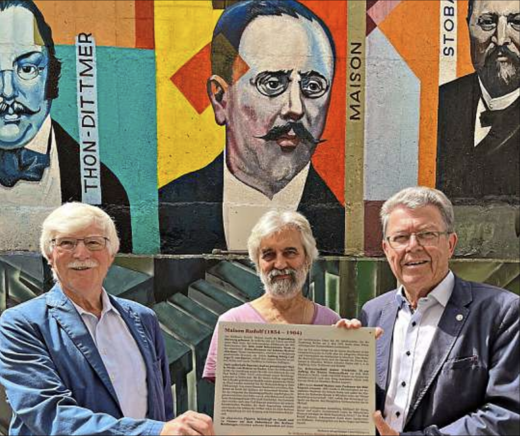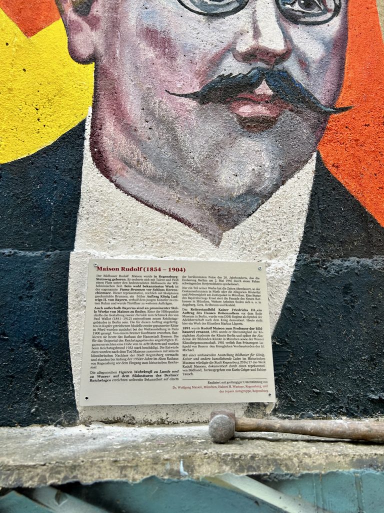 Am 25.07.2025 hat der ukrainische Fassadenmaler Oleg Kuzenko unter dem Porträt des Bildhauers Rudolf Maison die Texttafel angebracht. Mit den Porträts würdigt Regensburg Persönlichkeiten aus der Stadtgeschichte.